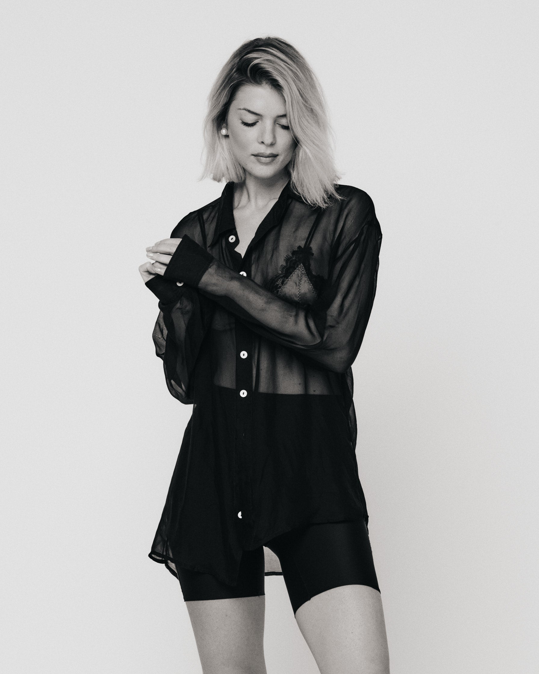 A study in ease and elegance, the Selene Shirt redefines resort dressing. Cut from 100% silk chiffon, this oversized button-up glides over the frame with weightless fluidity, balancing sensual transparency with refined tailoring.
